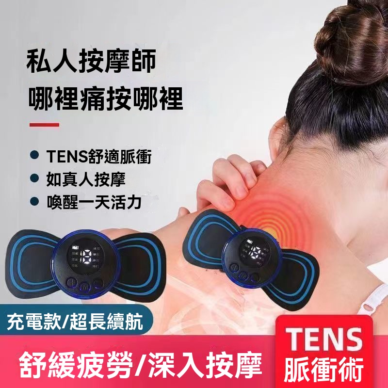 【日本熱賣款】液晶顯示8模式/19擋位 便攜式頸按摩儀器腰背部按摩貼多功能脈衝大功率電子按摩儀