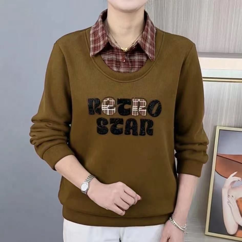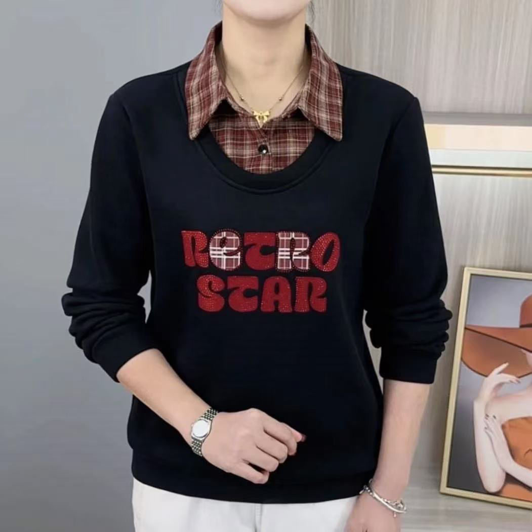 格紋領口與素雅衣身完美拼接 自然營造慵懶高級感 寬鬆版型藏肉顯瘦 柔軟舒適 胖瘦皆可穿